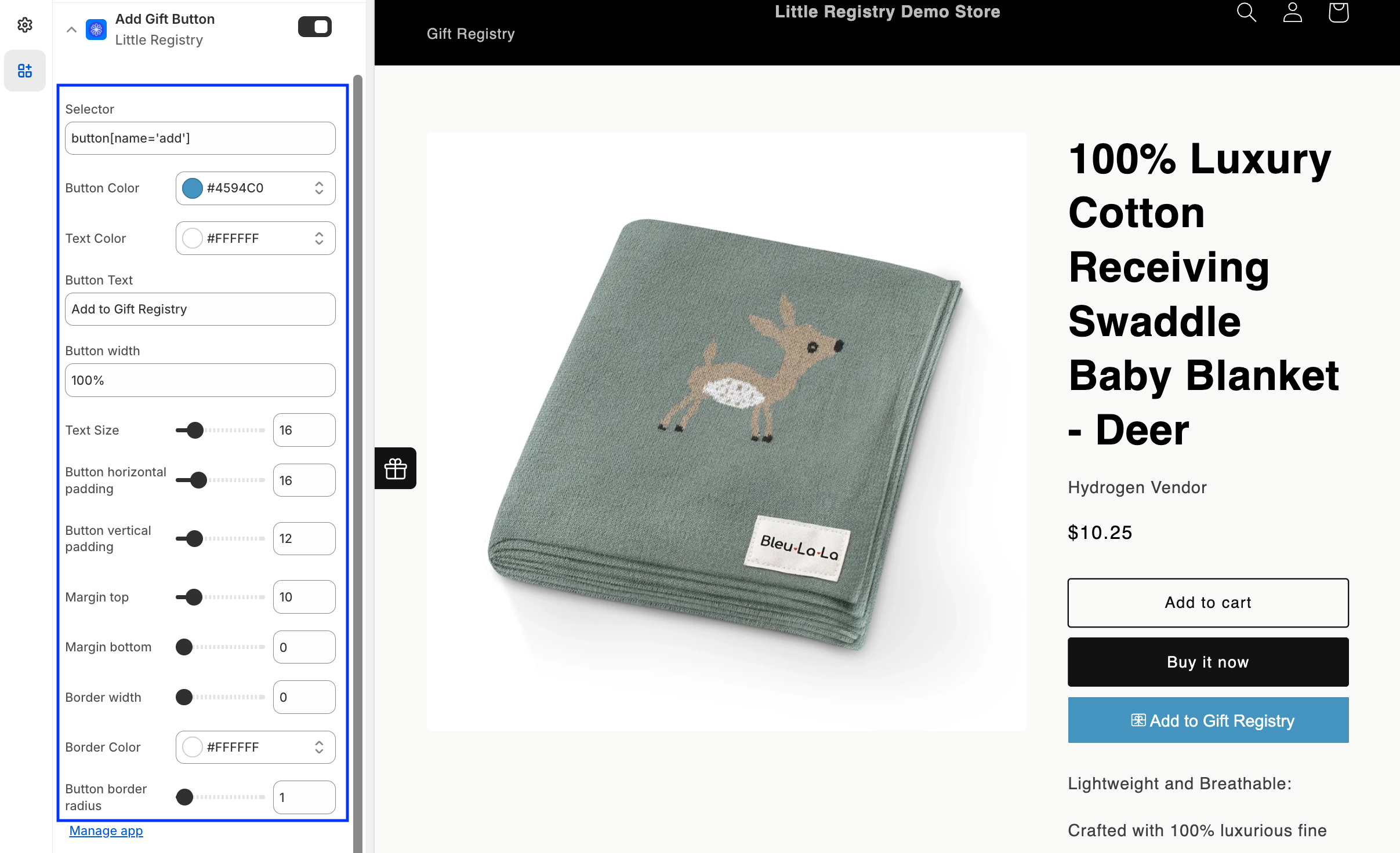 You can adjust the button’s look to match your store:- Change button and text colors