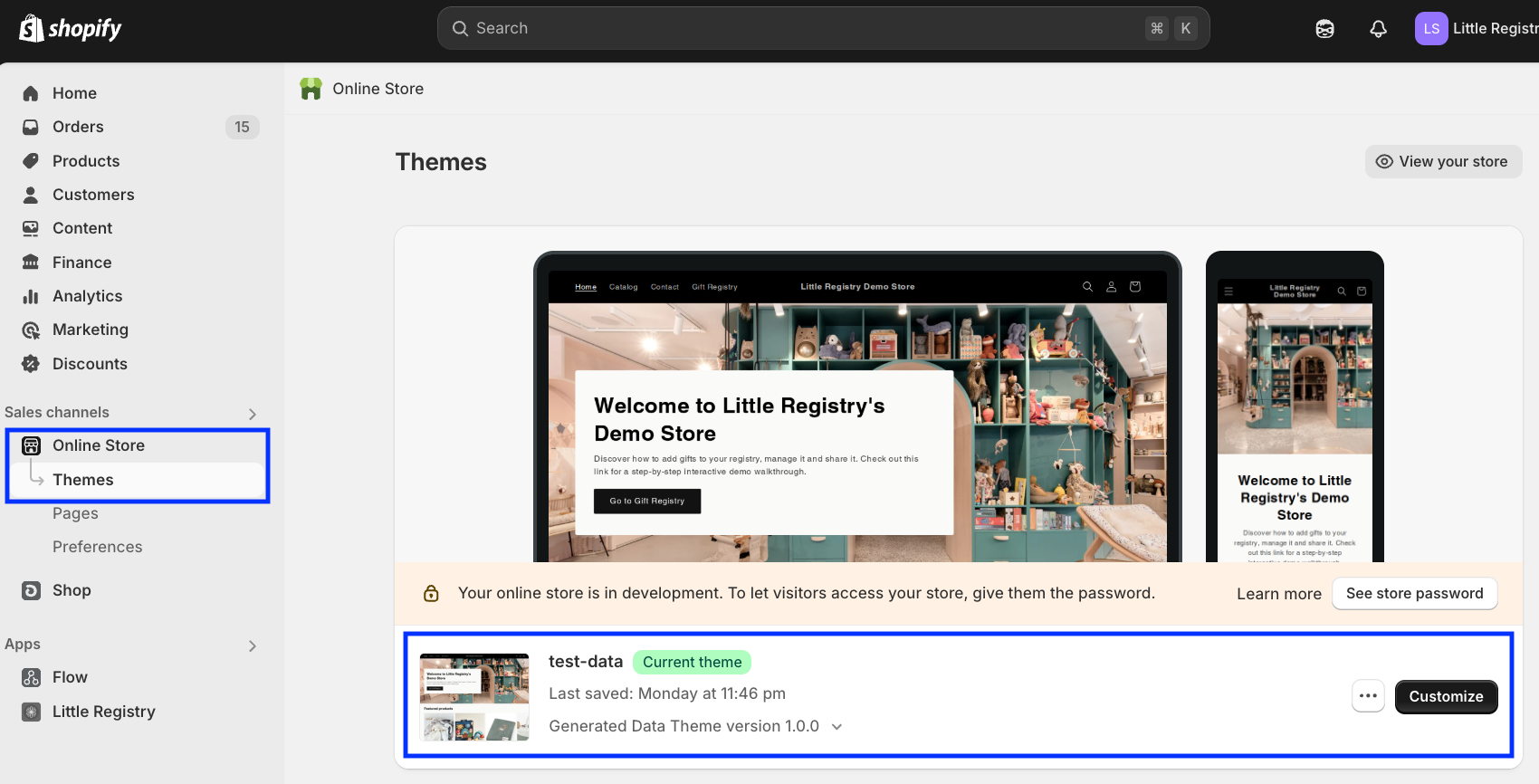In Shopify Admin, go to Online Store > Themes and click Customize.
